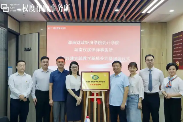 久久为功,善作善成。通过此次合作,权度律所与湖南财院会计学院建立了更加紧密的联系。此次会面标志双方合作迈出坚实的一步,为未来发展奠定了良好基础。双方将会积极推动实践教学基地成为大学生实践锻炼、成长成才的平台,就业实习、施展才华的舞台以及校企共建的样板。此举不仅有助于提升法学教育的质量,更将为全面依法治国、推进中国式现代化培养更多更优质的法律人才。